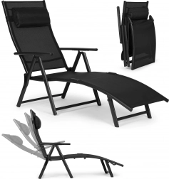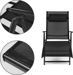 Stylowy czarny leżak MULTIGARDEN zaprojektowano z myślą o komfortowym relaksie w ogrodzie, na tarasie i przy basenie. Oddychająca siatka tekstylna dopasowuje się do ciała i zapewnia doskonałą wentylację, a solidna stalowa rama z powłoką proszkową gwarantuje stabilność i długą żywotność. W zestawie znajduje się miękki, odpinany zagłówek dla jeszcze przyjemniejszego wypoczynku.