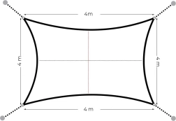 Żagiel można łączyć z innymi, aby pokryć większą powierzchnię, np. cały taras. Dla prawidłowego odpływu wody zalecamy nachylenie ok. 20° i dokładne naciągnięcie po przekątnej, co zapobiega tworzeniu się kieszeni wodnych.