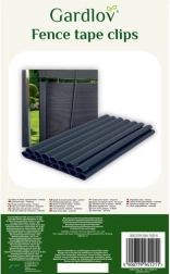 Zestaw 20 sztuk jest idealny do szybkiego zakończenia instalacji taśmy ogrodzeniowej na mniejszym odcinku. Klipsy mają uniwersalne wymiary 19 × 1,25 cm i elegancki antracytowy odcień, który nie przyciąga uwagi i zachowuje czysty wygląd ogrodzenia.