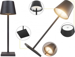 Nowoczesna stołowa lampka LED w matowej czerni wnosi przyjemne i funkcjonalne oświetlenie do każdego wnętrza. Sterowanie dotykowe na górze umożliwia szybką zmianę trybów oraz regulację jasności w zależności od potrzeb – od skoncentrowanego światła do pracy po miękkie, nastrojowe oświetlenie na wieczorny odpoczynek.