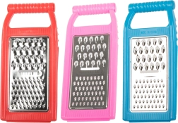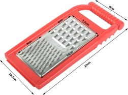 Uniwersalna kuchenna tarka, z którą w kilka chwil przygotujesz sałatki, dodatki i składniki do pieczenia. Płaski kształt oszczędza miejsce w szufladzie, a lekka konstrukcja wygodnie leży w dłoni. Tarka łączy ostrą stalową powierzchnię z wytrzymałą plastikową ramą dla wygodnego i bezpiecznego użytkowania.
