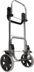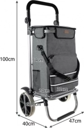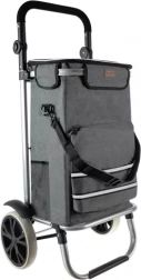 Torba wykonana jest z wytrzymałego, wodoodpornego materiału z aluminiową folią termoizolacyjną, która dłużej utrzymuje świeżość produktów. Dzięki odpinanemu paskowi na ramię można ją przenosić także poza ramą wózka, a praktyczna przednia kieszeń ułatwia szybki dostęp do drobiazgów. Cały wózek złożysz do kompaktowych wymiarów, co ułatwia przechowywanie w domu lub w bagażniku samochodu.