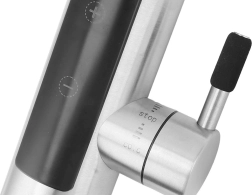 Korpus z metalu o eleganckim szczotkowanym wykończeniu i ergonomiczną dźwignią jest wytrzymały, łatwy w czyszczeniu i świetnie prezentuje się w każdym nowoczesnym wnętrzu.