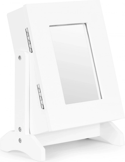 Odkryj praktyczną szkatułkę, która łączy design i funkcjonalność. Kompaktowe wymiary pozwalają ustawić ją na komodzie w sypialni, w łazience lub garderobie, a matowa biała kolorystyka łatwo wpasuje się w nowoczesne wnętrza. Zewnętrzne lustro przyda się przy przymierzaniu biżuterii i szybkim makijażu.