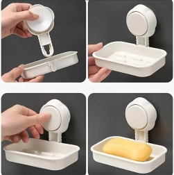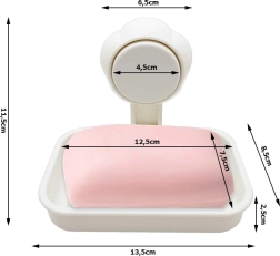 Mydelniczka jest przymocowana do ściany za pomocą silnej przyssawki. Wystarczy przyłożyć ją do ściany i mocno nacisnąć okrągły przycisk.