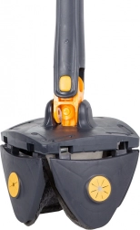 Urządzenie jest lekkie i praktyczne, można je łatwo rozłożyć do przechowywania nawet w najmniejszych przestrzeniach. Zapewnia wygodne użycie dzięki obrotowej głowicy, która obejmuje dużą powierzchnię czyszczącą, a jej ergonomiczny design umożliwia sprzątanie w trzech prostych krokach: płukanie, wyciskanie i mycie.