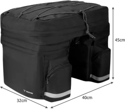 Ta sakwa jest wyposażona w trzy główne komory o łącznej pojemności 60 litrów, wystarczającej do przewożenia nie tylko prowiantu i odzieży, ale także wartościowych przedmiotów, takich jak laptop czy dokumenty w formacie A4. Idealna do jazdy miejskiej i dłuższych wycieczek rowerowych.