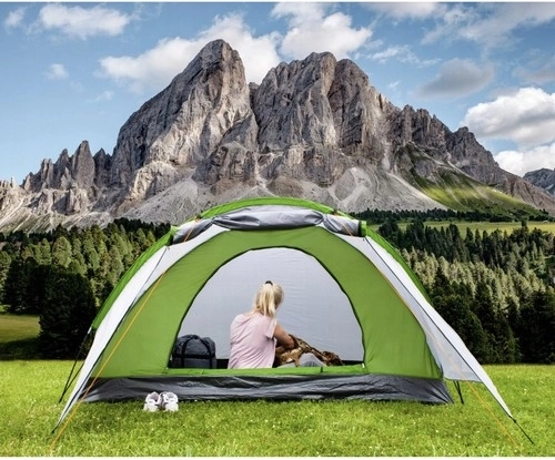 Namiot wykonany jest z wodoodpornego materiału z efektywną wentylacją, co zapewnia komfort w różnych warunkach.