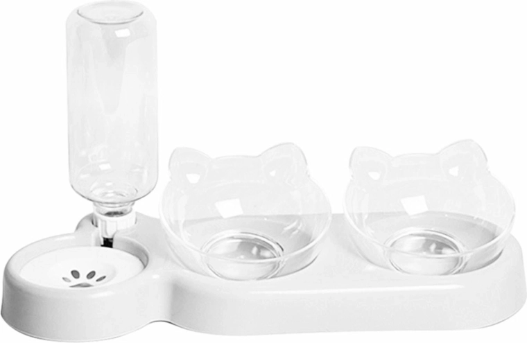Automatyczny dozownik wody i podwójna miska na karmę dla kotów. Nachylenie misek o 15 stopni ułatwia naszemu pupilowi przyjmowanie pokarmu. Butelka na wodę o pojemności 0,5 l zapewnia Twojemu pupilowi stały dostęp do świeżej wody. Dzięki specjalnemu zaworowi urządzenie automatycznie uzupełnia wodę ze zbiornika do miski. Kompaktowy design doskonale sprawdzi się w małych kuchniach i przedpokojach.