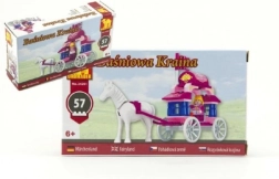 Dostojny biały koń ciągnie przepiękną karetę, w której spełniają się marzenia. Klocki Dromader to świetny wybór dla dzieci, które kochają bajki i kreatywną zabawę. Dzięki 57 elementom dzieci łatwo zbudują własną karetę i wyruszą w cudowną podróż do zamku.