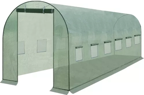 Mocna i odporna na rozciąganie folia wykonana jest z PE z wtopioną siatką. Przeznaczona jest do tunelu ogrodowego o wymiarach 2 x 2 x 2 m. Jej montaż jest bardzo prosty, pokrycie foliowe należy możliwie najciaśniej przymocować do stalowego stelaża, eliminując negatywne skutki silnego wiatru, deszczu i słońca. Folia do tunelu ma dwa solidne zamki błyskawiczne. Wejście można również zwinąć i zabezpieczyć karabińczykiem. Boczne okna wyposażone są w moskitierę, która zapewnia właściwą wilgotność i cyrkulację powietrza w tunelu. Boczną falbanę stabilizującą należy przysypać ziemią lub obłożyć kamieniami. Dzięki temu tunel będzie chroniony przed wiatrem, który mógłby podwiewać folię. Tunel foliowy ogrodniczy wydłuża okres wegetacyjny warzyw od przedwiośnia do późnej jesieni. Zapewnia doskonałe efekty przy uprawie warzyw ciepłolubnych, takich jak pomidory. Praktyczne i niedrogie rozwiązanie do zastosowania w ogrodach przydomowych.