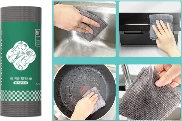 Utrzymuj swoją kuchnię perfekcyjnie czystą dzięki rolce szarych ściereczek i gąbek o wymiarach 20 × 9 cm. W opakowaniu znajdziesz 25 sztuk, które świetnie sprawdzą się przy wycieraniu rozlanych płynów, czyszczeniu blatów roboczych, zlewu oraz urządzeń. Dzięki praktycznej rolce łatwo oderwiesz potrzebny kawałek i od razu użyjesz.