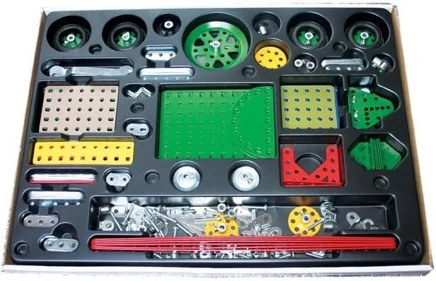 Oprócz klasycznych modeli, takich jak traktor, duży dźwig lub samochód ciężarowy, możesz przy pomocy zestawu zbudować przekładnie i duże maszyny. Wymiary pudełka to 54 x 36 x 6 cm i jest odpowiednia dla dzieci od 6 lat.