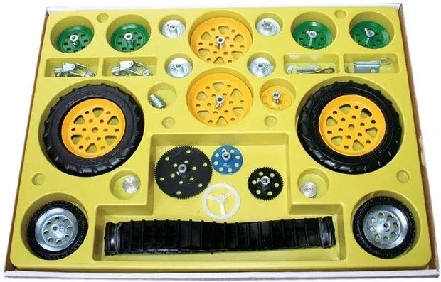 Ten zestaw konstrukcyjny zawiera wszystko, czego potrzebujesz do budowy różnorodnych modeli, w tym duże koła traktorowe i koła zębate.
