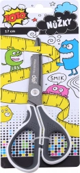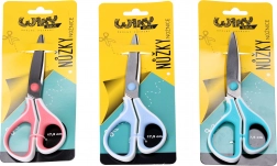 Praktyczne kolorowe nożyczki o długości 17,5 cm z ergonomicznie wyprofilowaną miękką rączką i gumowym, antypoślizgowym uchwytem. Idealne do szkoły, domu i biura. Dostępne w 3 wariantach kolorystycznych.