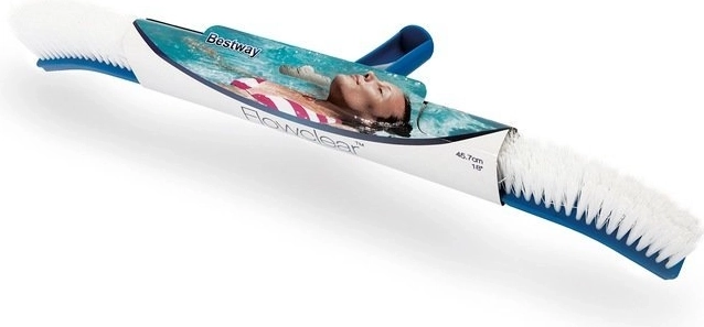 Utrzymuj swój basen idealnie czysty dzięki praktycznej szczotce BESTWAY Flowclear o długości 50,5 cm. Dzięki szerokiej głowicy z wytrzymałym włosiem skutecznie usuwa zabrudzenia i glony z dna oraz ścian. Zaokrąglone rogi chronią folię i pomagają dotrzeć do trudniej dostępnych miejsc. Szczotka ma lekką, plastikową konstrukcję i jest kompatybilna z tyczką teleskopową 30 mm, co zapewnia wygodny zasięg po całym basenie.