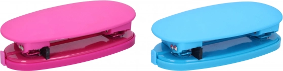 Praktyczny dziurkacz do papieru w nowoczesnych kolorach. Wybierz pomiędzy niebieskim a różowym wariantem.