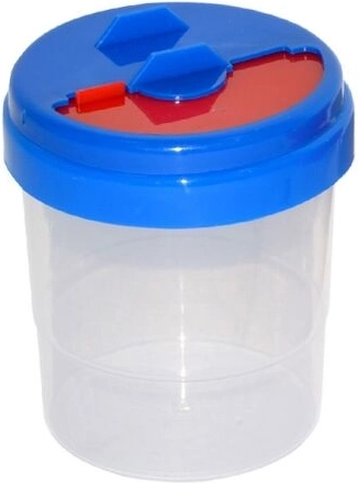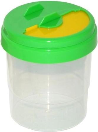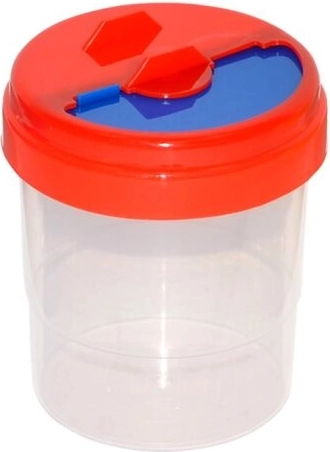 Praktyczny kubek na wodę dla małych i dużych artystów z zamykaną, nieprzeciekającą pokrywką zapewnia, że woda nie wyleje się nawet po przewróceniu. Dzięki przezroczystemu pojemnikowi zawsze masz kontrolę nad ilością wody, a kolorowe warianty (żółty, zielony, czerwony, niebieski) pomagają w organizacji pędzli i farb.