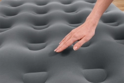 Materac dmuchany Bestway przynosi komfort i praktyczność podczas kampowania i jako dodatkowe łóżko dla gości. Jego konstrukcja inspirowana jest klasycznymi sprężynami, co zapewnia efektywne wsparcie ciała. Welurza powierzchnia materaca jest przyjemna w dotyku i łatwa do utrzymania.