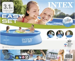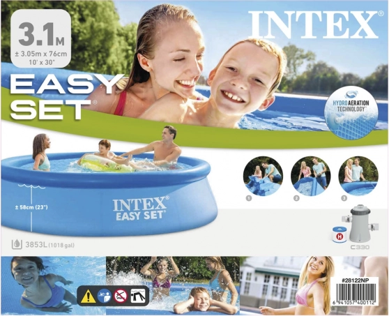 Praktyczny basen naziemny INTEX Easy Set to idealny wybór do ogrodu – w kilka minut gotowy do napełnienia, stabilny dzięki nadmuchiwanemu kołnierzowi i wykonany z trwałego, trójwarstwowego PVC. Pojemność 3 853 litrów zapewnia dużo miejsca na orzeźwienie dla całej rodziny.