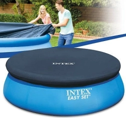 Pokrywa INTEX do basenów rozporowych (z nadmuchiwanym kołnierzem) i innych okrągłych basenów o średnicy 396 cm to niezbędny element wyposażenia każdego posiadacza basenu. Niezawodnie zapobiega wpadaniu liści, owadów i zanieczyszczeń do wody i pomaga utrzymać basen w czystości przez dłuższy czas. Nieprzezroczysty materiał ogranicza przenikanie światła słonecznego, co zmniejsza rozwój glonów i bakterii.