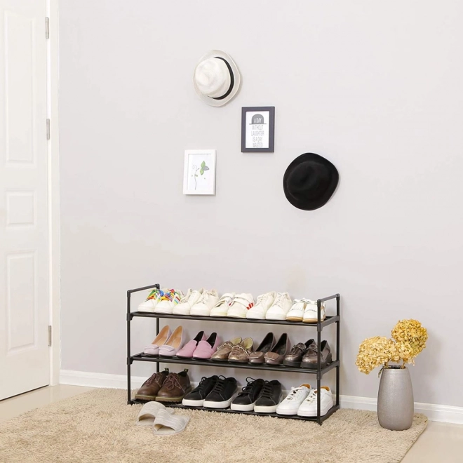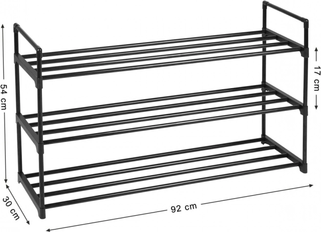 Ten uniwersalny regał na buty świetnie sprawdzi się w przedpokoju, korytarzu i garderobie. Solidne rury stalowe oraz plastikowe łączniki zapewniają długą żywotność i odporność na wilgoć oraz odkształcenia. Minimalistyczne wykonanie w czarnym kolorze łatwo łączy się z nowoczesnym i rustykalnym wnętrzem.