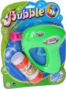 Pistolet do baniek dla dzieci: wariant żółty lub zielony, 50 ml płynu. Łatwa obsługa i mnóstwo baniek. Świetna zabawa od 3 lat.