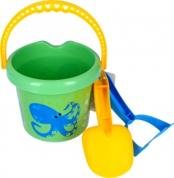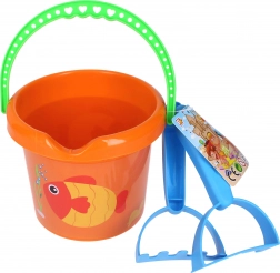 Praktyczny zestaw do piasku dla małych budowniczych zawiera wiaderko, łopatkę i grabki. Idealny na plażę i plac zabaw, dostępny w 3 wersjach kolorystycznych – niebieskiej, zielonej i pomarańczowej.