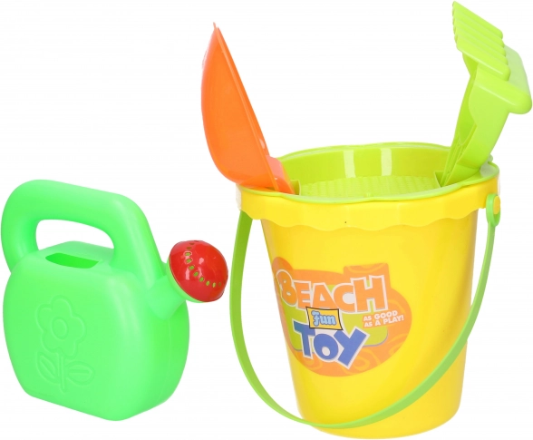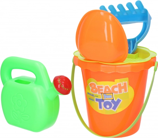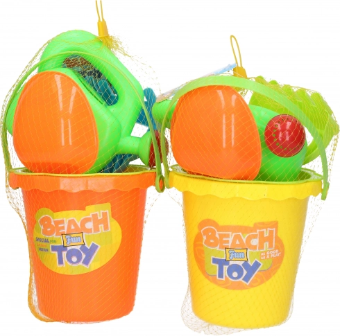 Praktyczny dziecięcy zestaw do piasku o wielkości 15 cm zawiera wszystko, czego mali budowniczowie potrzebują: wiaderko, sitko, konewkę, grabki i łopatkę. Dostępne są 2 wersje kolorystyczne – żółta i pomarańczowa. Świetny na plac zabaw, plażę i do ogrodu.