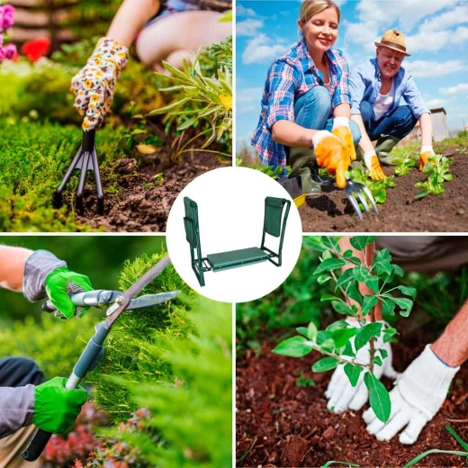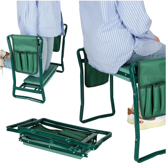 Składane ogrodowe klęcznik i stołek 3w1 z organizerem