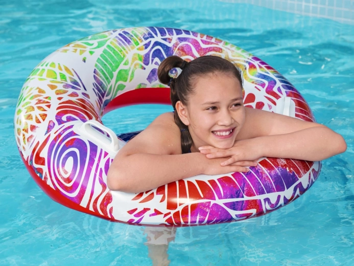 Ze średnicą 91 cm koło jest komfortowe dla starszych dzieci i nastolatków. Zawór bezpieczeństwa umożliwia łatwe nadmuchiwanie i utrzymanie powietrza. Lekka i kompaktowa konstrukcja czyni je idealnym dodatkiem na wakacje, nad basen i nad jezioro.