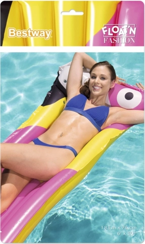 Dmuchane leżakowanie Bestway Tropical Bird to idealny towarzysz do basenu i nad wodę. Przyjemnie miękki, a jednocześnie solidny winyl zapewnia niezawodne utrzymanie i komfort, natomiast dwie oddzielne komory powietrzne podnoszą bezpieczeństwo i stabilność na wodzie.
