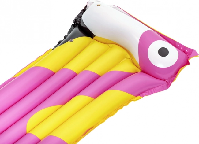 W zestawie znajduje się zintegrowana dmuchana poduszka, która podpiera głowę i kark dla pełnego relaksu. Barwna letnia grafika z motywem ptaka doda Twojej wodnej zabawie stylu i dobrego nastroju. Lekka konstrukcja umożliwia szybkie pompowanie, spuszczanie powietrza oraz łatwe przenoszenie i przechowywanie.