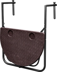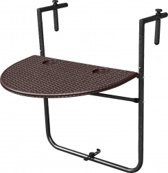 Dzięki 3-stopniowej regulacji wysokości dopasujesz stół do swoich potrzeb. Gdy potrzebujesz więcej przestrzeni, po prostu złożysz go w kilka sekund. Montaż jest szybki – wystarczy zawiesić na balustradzie i dokręcić zaciski. Regulowane uchwyty pasują na balustrady o szerokości 6–14,5 cm.