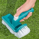 Dzięki solidnej konstrukcji i odpornemu włosiu poradzi sobie z glonami, nalotami oraz codziennymi zabrudzeniami. Za pomocą zatrzaskowych uchwytów łatwo podłączysz ją do teleskopowych kijów o wewnętrznej średnicy 30 mm, dzięki czemu wyczyścisz także głębsze partie basenu bez potrzeby nurkowania.