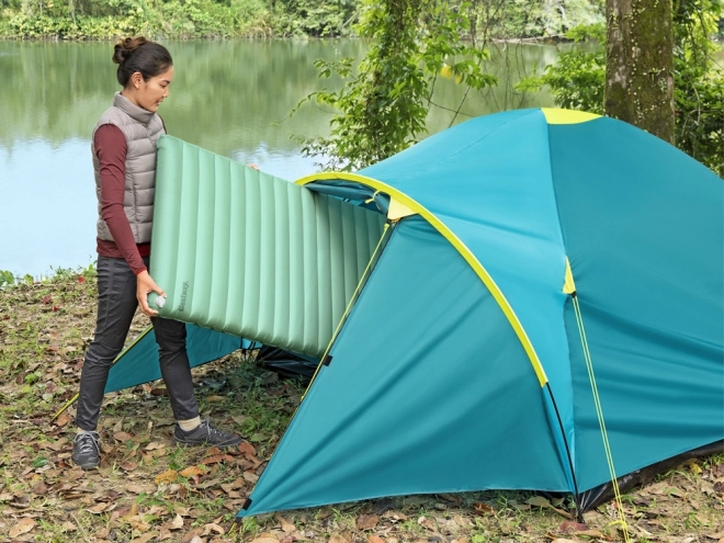 Materac jest lekki i łatwy do złożenia, więc możesz mieć go zawsze pod ręką. Po złożeniu nie zajmuje dużo miejsca, co ułatwia jego transportowanie w dowolne miejsce.