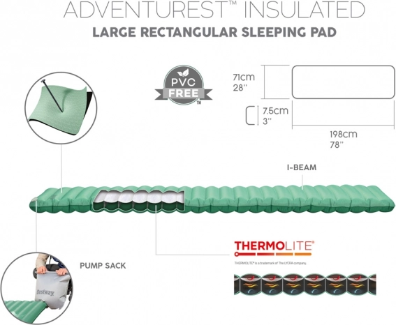 Materac dmuchany Bestway AdventuRest jest doskonałym towarzyszem na twoje przygody na świeżym powietrzu. Dzięki opatentowanemu systemowi AirCinch™ cieszyć się będziesz łatwym i szybkim nadmuchiwanie, które nie wymaga dodatkowych narzędzi. Wystarczy nacisnąć rękami, a materac wypełni się powietrzem.