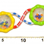 Grzechotka w kształcie hantelka to idealna pierwsza zabawka dla niemowląt. Przezroczyste końce z kolorowymi koralikami tworzą ciekawe efekty wizualne i przyjemne grzechotanie, które motywuje dziecko do chwytania i odkrywania. Dzięki kompaktowemu rozmiarowi wygodnie mieści się w każdej dziecięcej rączce.