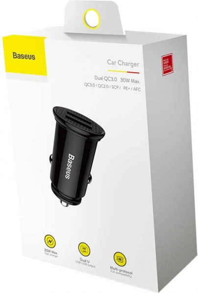 Ta stylowa ładowarka samochodowa Baseus z dwoma portami USB oferuje szybkie ładowanie dzięki wsparciu technologii takich jak QC 3.0 i Huawei SCP. Moc 30 W szybko naładuje Twoje urządzenia.
