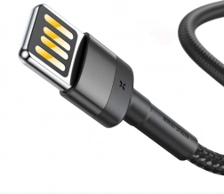 Dwustronne złącze USB dla łatwego podłączenia za pierwszym razem. Aluminiowe końcówki i wzmocnione gumowe łączenie zapewniają większą trwałość w newralgicznych miejscach zgięcia.