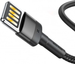 Kabel Baseus Cafule (edycja specjalna) łączy wysokiej klasy materiały z praktycznym wzornictwem. Oplot z wytrzymałego nylonu zapobiega plątaniu, aluminiowe złącza zwiększają trwałość, a wzmocnione łączenie TPE chroni najbardziej narażone części przewodu. Dzięki dwustronnemu złączu USB oraz końcówce Lightning idealnie sprawdzi się z iPhone’em, iPadem i innymi urządzeniami Apple.