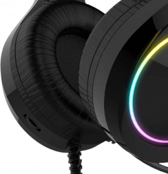 spersonalizuj swój zestaw eleganckim efektem RGB na nausznikach, który podkreśli atmosferę podczas gry.