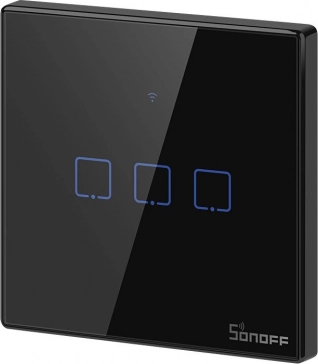 Ulepsz swoje oświetlenie stylowym inteligentnym włącznikiem SONOFF T3 TX. Wersja trzykanałowa pozwala niezależnie sterować trzema obwodami – dotykiem, zdalnie przez telefon lub za pomocą pilota RF 433 MHz. Hartowane szkło i niepalne materiały gwarantują bezpieczeństwo i długą żywotność, a dyskretne podświetlenie ułatwia korzystanie w ciemności.