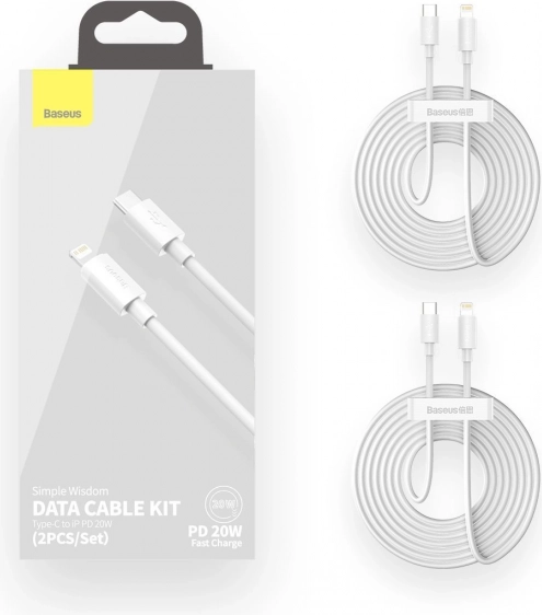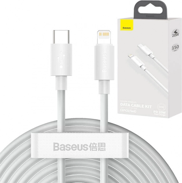 Baseus Simple Wisdom zestaw kabli USB‑C na Lightning 20 W PD, 1,5 m, biały (2 szt.)