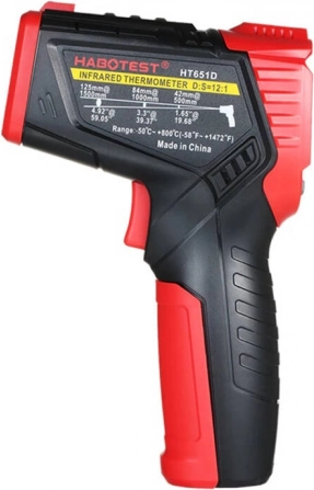 Termometr na podczerwień Habotest HT651D gwarantuje bezkonkurencyjną dokładność pomiaru. Za jego pomocą nie tylko zmierzysz temperaturę konkretnego punktu, ale także poznasz temperaturę otoczenia, punkt rosy i wilgotność względną. Kolorowy wyświetlacz ułatwia pracę z urządzeniem, a dołączony termopara typu K zapewnia jeszcze więcej możliwości. Termometr ma także funkcję alarmu. Do zasilania wymagane jest zastosowanie baterii 9V 6F22, którą należy zakupić oddzielnie.
