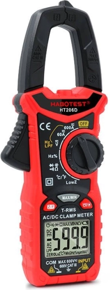 HABOTEST HT206D to uniwersalny multimetr cęgowy zaprojektowany do szybkiej i bezpiecznej diagnostyki instalacji elektrycznych. Obsługuje napięcie AC/DC do 600 V, prąd AC/DC do 600 A, pomiary rezystancji, pojemności, częstotliwości, wypełnienia, temperatury oraz oferuje praktyczne funkcje MAX/MIN, Data Hold i auto-wyłączenie. Bezkontaktowa detekcja napięcia NCV z sygnalizacją dźwiękową i świetlną podnosi bezpieczeństwo pracy.