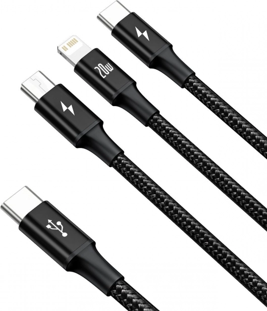 Ten praktyczny kabel marki Baseus pozwala zasilać aż 3 urządzenia jednocześnie. Kompatybilny z szeroką gamą urządzeń dzięki złączom Lightning, USB-C i Micro USB, zapewnia szybkie ładowanie aż 20W. Prędkość przesyłu danych sięga nawet 480 MB/s, co czyni go idealnym rozwiązaniem dla nowoczesnego stylu życia.