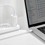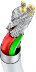 Przemyślana konstrukcja z wzmocnionymi cynowanymi przewodami miedzianymi oraz trwałą osłoną z ABS została zaprojektowana na długie lata. Odciążone łączenie wtyku z TPE chroni najbardziej narażoną część kabla przed łamaniem. Zintegrowany inteligentny układ stabilizuje napięcie i zabezpiecza urządzenia przed przeładowaniem i przegrzaniem.