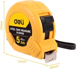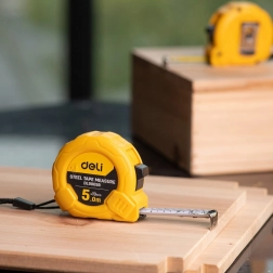 Miara zwijana DELI została zaprojektowana do precyzyjnych i wygodnych pomiarów wewnątrz i na zewnątrz. Sztywna stalowa taśma o grubości 0,11 mm utrzymuje prostą linię i nie załamuje się, dzięki czemu łatwo uzyskasz dokładne wyniki. Dzięki automatycznej blokadzie i płynnemu zwijaniu praca jest bezpieczna i intuicyjna.