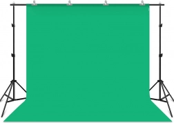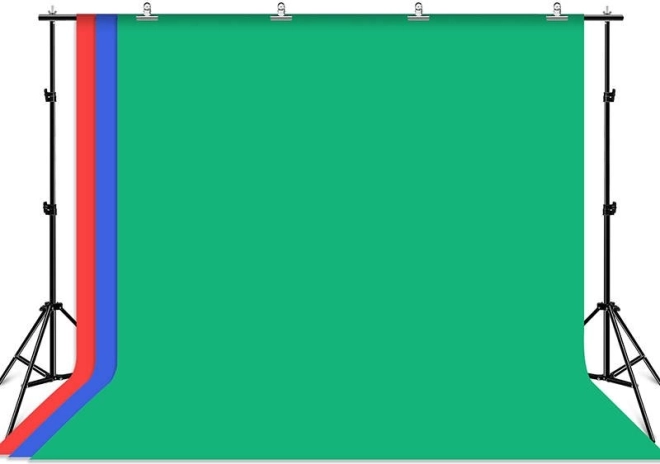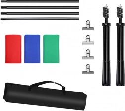 W zestawie znajdują się trzy materiałowe tła - zielone, niebieskie i czerwone, każde o wymiarach 3 x 2,9 m, więc każdy może wybrać według potrzeb. Zestaw jest idealny do nagrywania vlogów, transmisji na żywo lub fotografowania różnych wydarzeń.